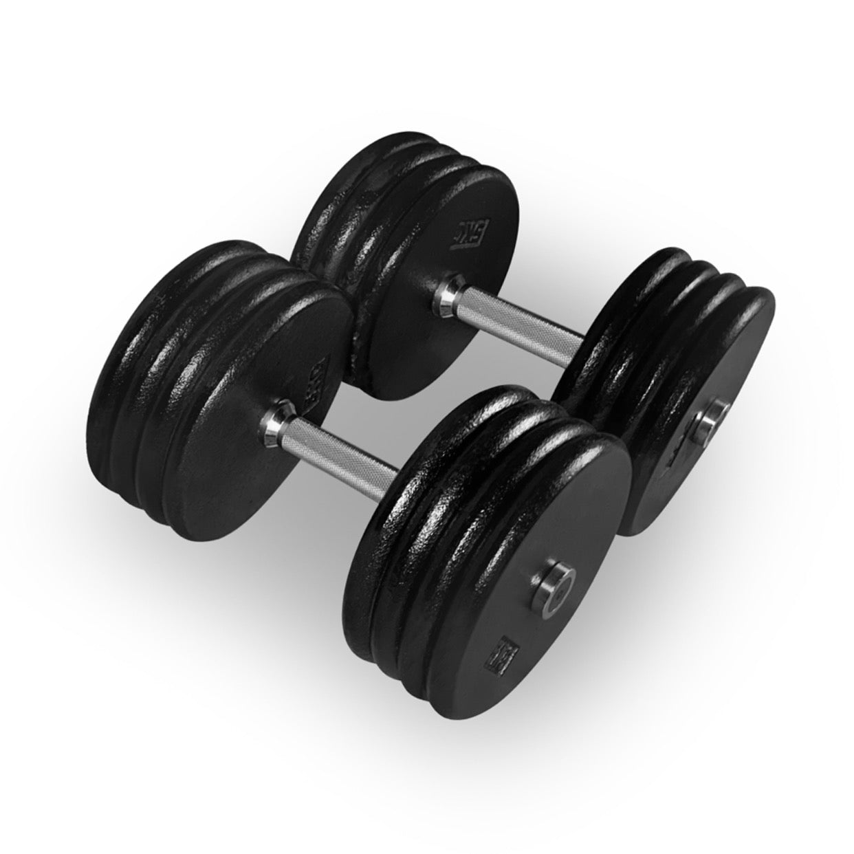 The plates are of solid cast iron construction which ensures durability. The solid chrome-plated dumbbells feature knurled handles for enhanced grip. Each dumbbell is equipped with 8mm alan key ends to securely fasten the weights.