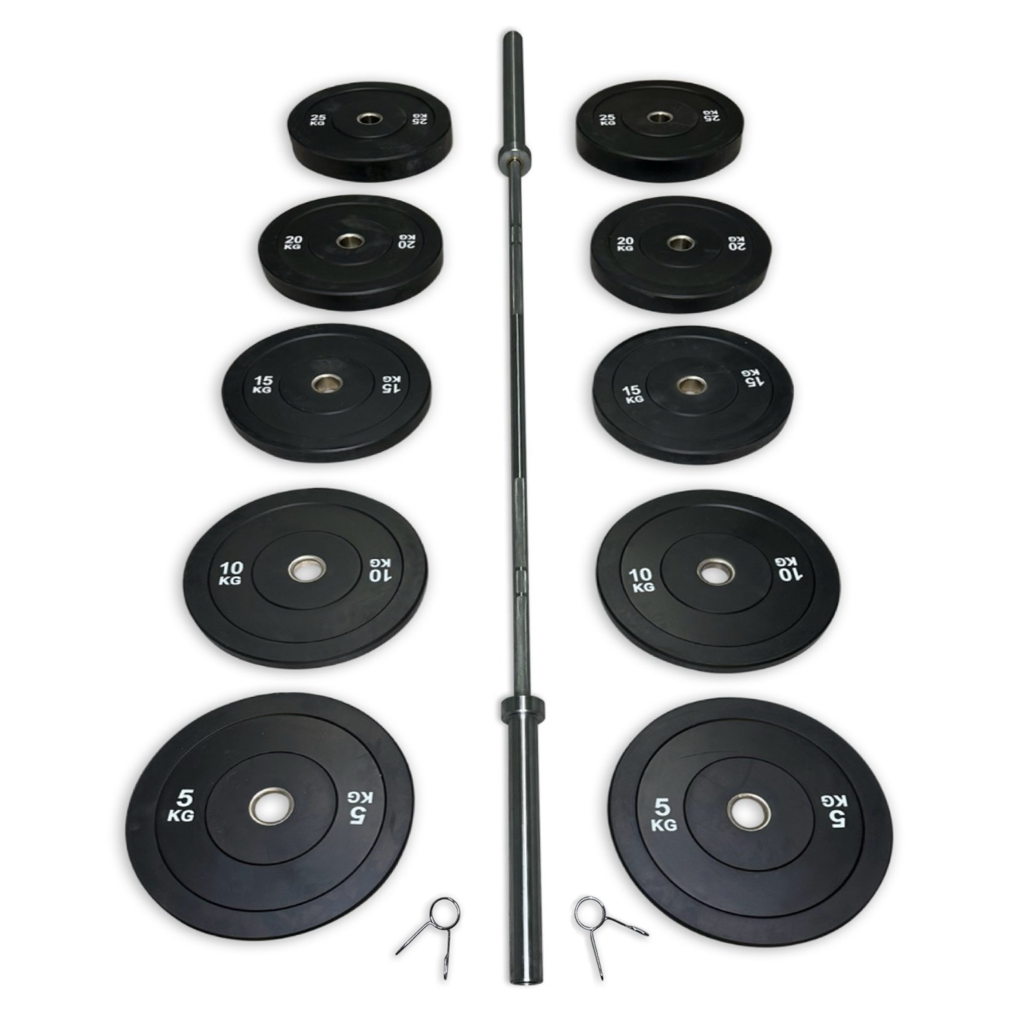 No Pain No Gain Fitness Ltd are proud to offer this 170kg Bumper Barbell Set, which includes: