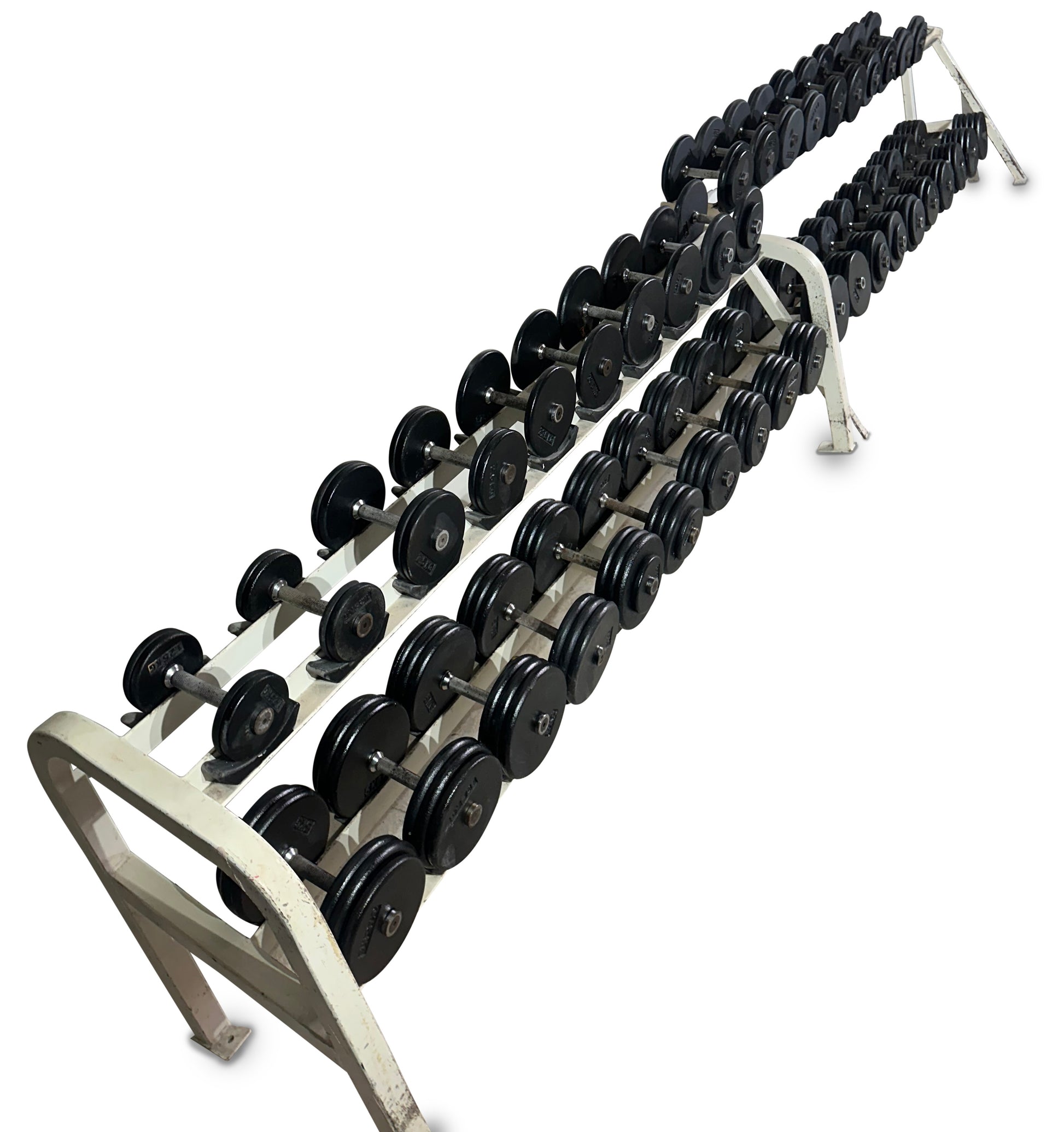 Product images for some of the dumbbells included may be missing. The plates are used but refurbished, so the paintwork may vary slightly from that shown in the images.