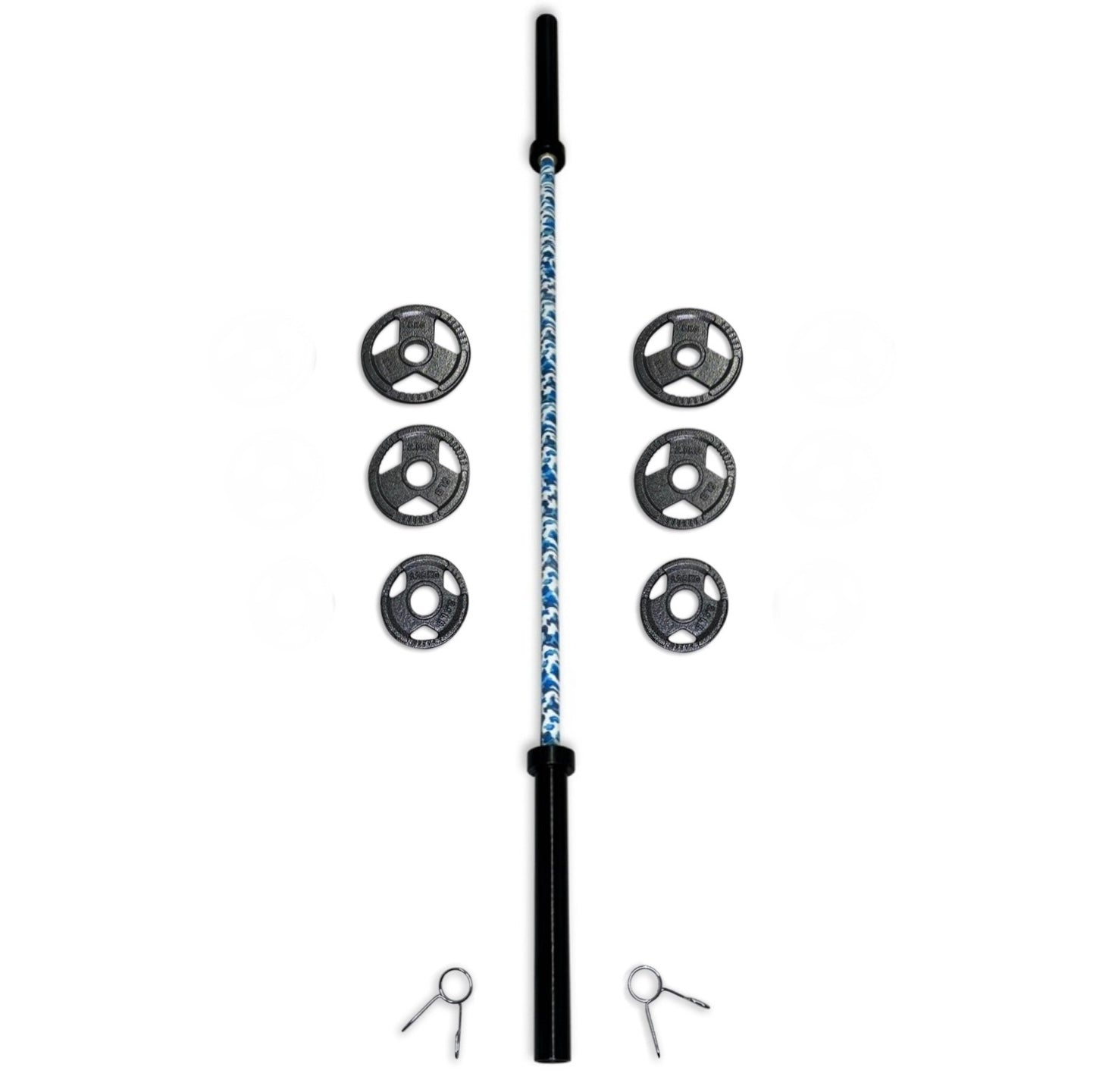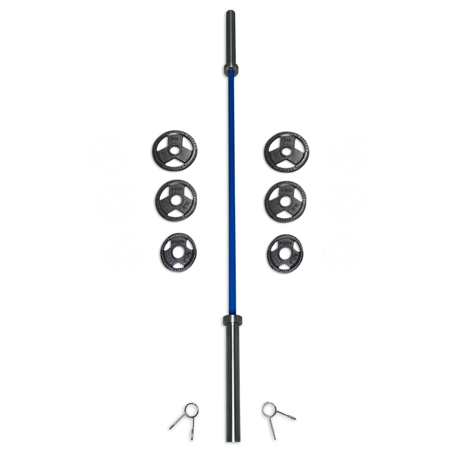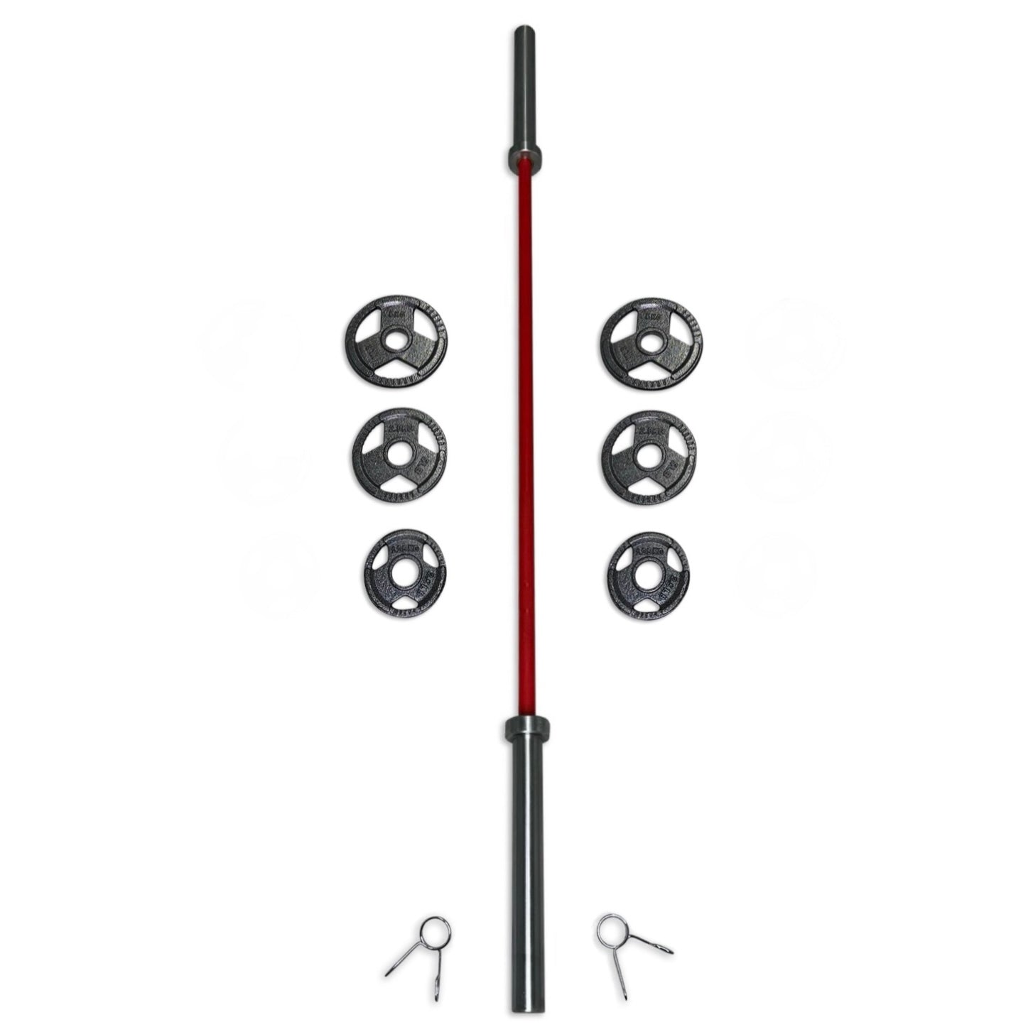 Please note: Due to image editing, product photos may not fully reflect the finish or dimensions. Additionally, the product images may not appear in the same order as the barbell variants listed. For unedited, high-resolution images, please visit the “Olympic 2” Weight Plates” section or contact us directly. 25kg is a rounded down weight, the total weight of this set with a 5 foot barbell is approx. 25.9kg