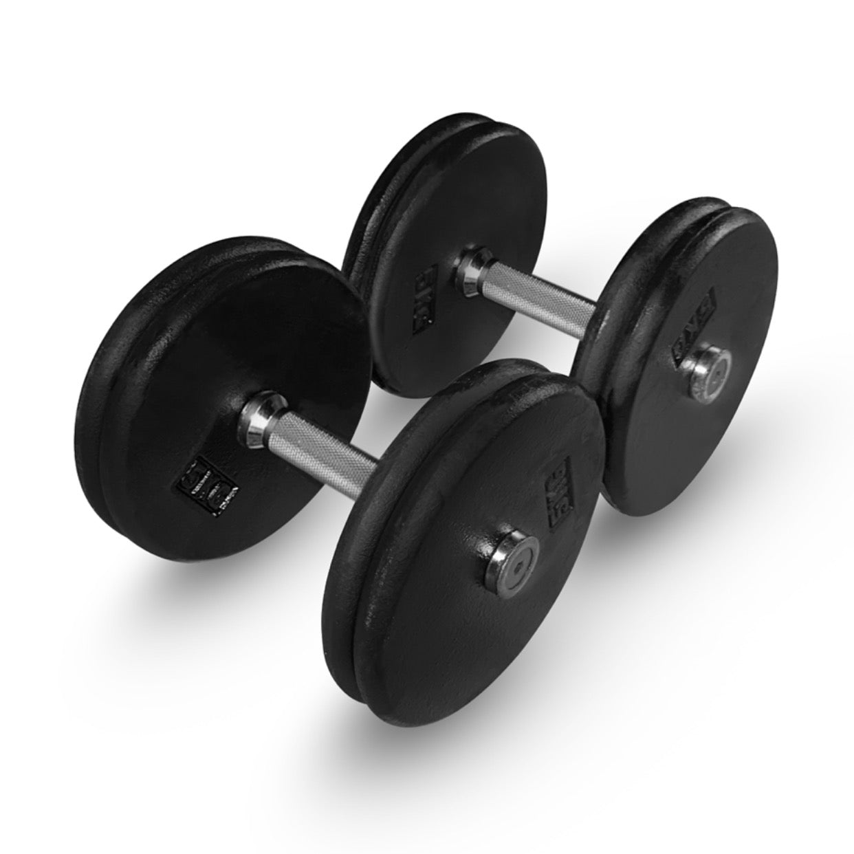 The plates are of solid cast iron construction which ensures durability. The solid chrome-plated dumbbells feature knurled handles for enhanced grip. Each dumbbell is equipped with 8mm alan key ends to securely fasten the weights.