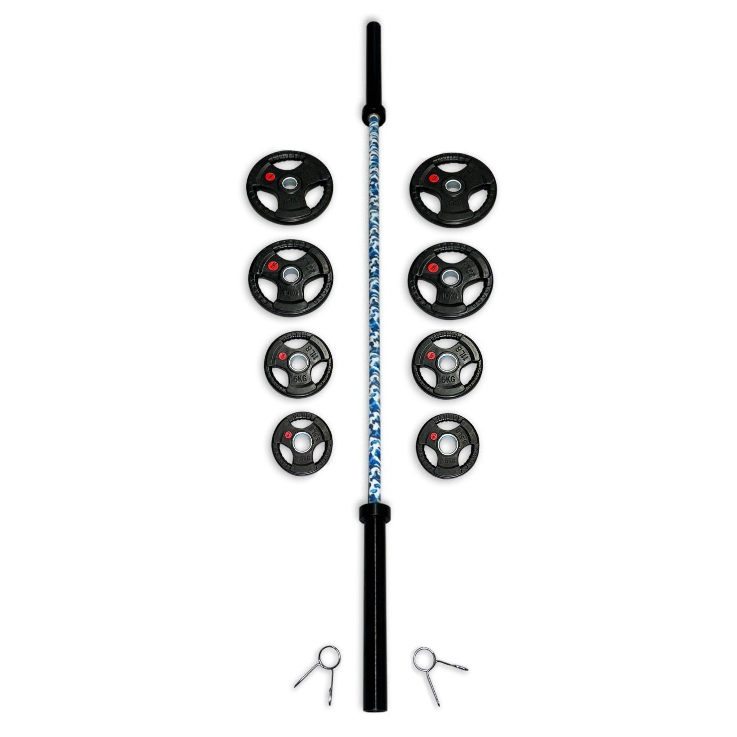 73-85kg Rubber Coated Tri-Grip Barbell Set